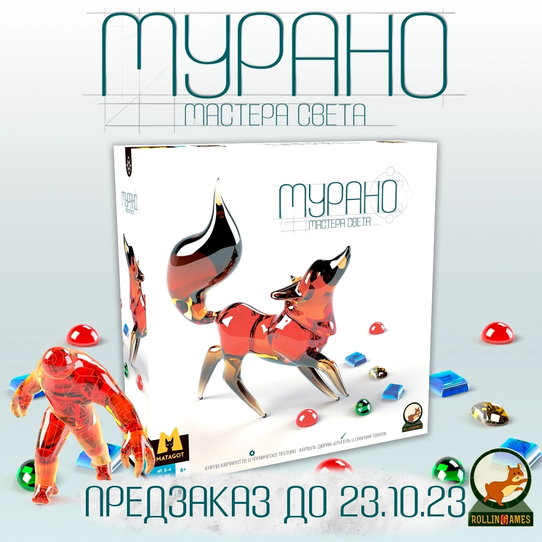 Настольная игра Мурано: Мастера света - это изящная игра с очень красивыми иллюстрациями настоящих изделий из муранского стекла. Сразу в глаза бросаются красивые игровые элементы: осколки стекла разной формы и цвета, жетоны монет… В игре даже используется коробка, в которой размещается вращающееся кольцо с указателем. Игроки - создатели изделий из муранского стекла, которым необходимо в короткий срок создать 5 изделий неимоверной красоты. Для этого нужно купить стекло или обменять его на рынке стекла. Это нужно сделать на столько мастерски, чтобы после производства изделия на столе-планшете осталось как можно меньше лишнего стекла, ведь за изделие игроки получают столько монет, сколько свободных ячеек осталось на столе после производства. Настольная игра Мурано: Мастера света вознаграждает игроков, любящих крутить «комбо-вомбо»: после создания изделие можно использовать его бонусы или создать дополнительное изделие вне очереди. Игра заканчивается невероятно быстро. Кого-то это расстр