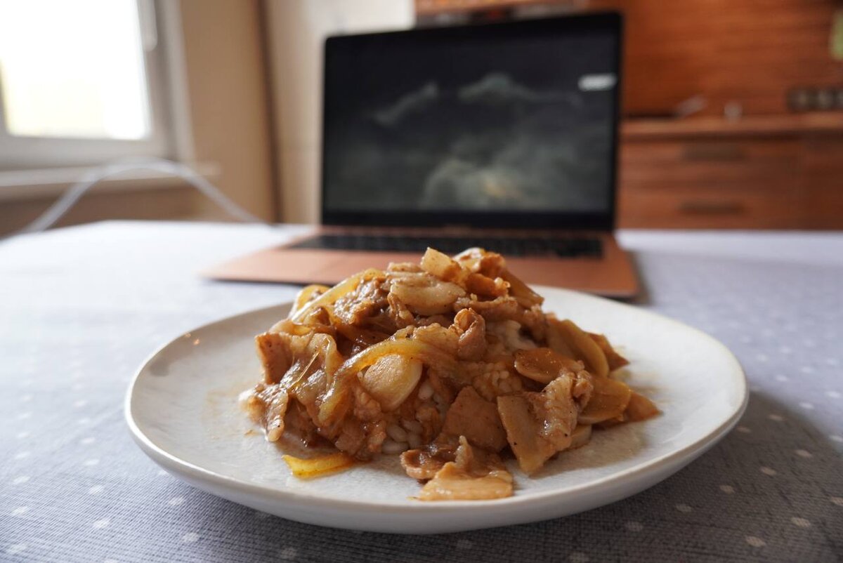 Как приготовить самгепсаль, не используя гриль? С этим рецептом вам хватит сковородки и 30 минут, чтобы насладиться этим корейским блюдом. Если у вас есть больше времени, то лучше не готовьте его. Не торопясь, вы можете его пережарить :) Ингредиенты для самгепсаля Основные ингредиенты: Ингредиенты для приправы: Порядок приготовления 1. Подготовим мясо. Порежьте грудинку кусочками в 2-4 см. 2. Дальше порежьте овощи: лук, чеснок и имбирь. 3. Первые подготовления завершены. Можем начать жарить. Масло использовать необязательно: грудинка и так достаточно сочная. Выложите в сковородку мясо, чеснок и лук. Жарьте на сильном огне 7 минут, периодически помешивая. 4. Когда мясо приготовилось, а лук начал становиться прозрачным, то можно приступать к приправе. 5. Перейдем к приправе. Смешайте воду, соевый соус, сахар, перец и имбирь. Подсолите, если вам не хватает соли. 6. Добавьте приправу в мясо и потушите на сильном огне, чтобы мясо пропиталось соусом, а сахар карамелизовался. Не держите