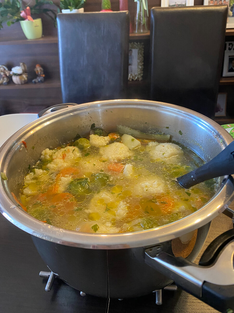 Сегодня мы отмечали два дня рождения: день рождения бабушки и тети мужа. У одной день рождения уже был, у второй - только будет. Но венгры в этом плане не суеверные, могут отметить сразу несколько праздников, которые будут и через месяц :D Свой день рождения и день рождения мужа я запретила так отмечать. Мы празднуем только ПОСЛЕ :) А остальные пусть отмечают когда хотят - хоть круглый год. В России я успешный онлайн-преподаватель английского языка, а в Европе - начинающий предприниматель, который развивает бренд свечей ручной работы. На своем канале я рассказываю о своей жизни в Венгрии. Подписывайтесь! Сегодня мы были в гостях у тети. Она готовила праздничный ужин. Я думаю, что вам будет интересно посмотреть, что она приготовила, потому что она выросла в другой семье. В общем, ее не наша бабушка учила готовить :) Первое блюдо По традиции, первое блюдо - овощной суп. Он состоит из цветной капусты, моркови, брюссельской капусты и петрушки. Впервые такой ела. Свекор накидал кучу чили и