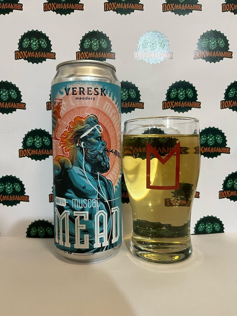 Статистика: медовуха нефильтрованная осветленная, алкоголь - 6%, состав: вода подготовленная, мёд пчелиный, дрожжи винные, мускатный орех. Объем: 0.45 л Дата розлива: 02.10.2023 Изготовитель: ООО «Медовар», Россия, г. Оренбург По-братски: совсем недавно мне прислали ребята из медоварни Veresk на дегустацию 4 своих сорта. Я признаюсь сразу, ничего о них не знаю и не слышал раньше. К сожалению, в посылке они не указали хотя бы минимальной инфы о себе, типа того, когда ДР, кто они и что, какие планы и цели и тд. В запрещенной сети с картинками я обнаружил, что первый их пост был 12 апреля этого года, значит ребята очень молодые. И это круто! В Untappd числится 8 сортов, 4 из них у меня есть, я о них расскажу, 4 остальные без чекинов, наверно новые будущие сорта. Из присланного я первым заинтересовался этим сортом. И с него начну пожалуй. Аромат легкий, чувствуется мускатный орех, немного медовых ноток, газация минимальная, во вкусе чувствуется сладость мёда, в меру сладко, есть такая горь
