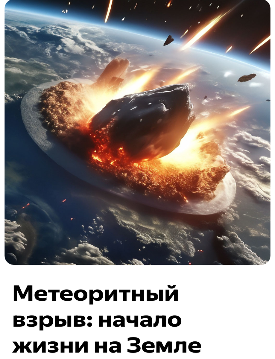На заре времен, когда на планете Земля еще не было людей, но уже существовали животные и растения, произошло нечто невероятное. В глубинах океана возникла жизнь - крошечные одноклеточные организмы, которые начали размножаться и эволюционировать. Постепенно эти организмы стали более сложными и развитыми, и начали осваивать сушу. Они стали первыми существами, которые вышли на берег и начали жить на земле. Но они были еще очень примитивными и не могли существовать без воды. Однажды, в один из дней, когда Солнце было особенно ярким, на землю упал метеорит. Он был настолько большим и тяжелым, что его падение вызвало огромный взрыв. Это событие стало началом новой эры на Земле - эры людей. Когда дым рассеялся, на месте взрыва появился огромный кратер. В нем было много обломков метеорита, которые были покрыты слоем пыли. Но среди этих обломков были и другие вещества, которые не были частью метеорита. Эти вещества были очень важны для развития жизни на Земле. Они содержали в себе элементы,
