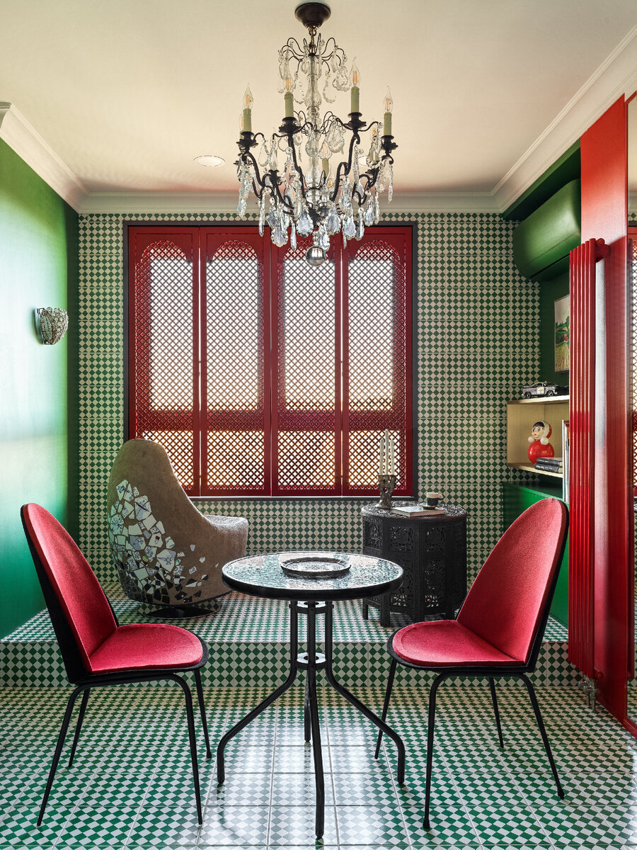 Заполненный яркими красками и антикварной мебелью, изобилующий необычными дизайнерскими решениями, эклектичный интерьер от Дарьи Васильковой создан в соответствии с характером заказчицы. Работу над проектами мы начали буквально с нуля. Заказчица — молодая женщина, которая хотела интерьер с «вау-эффектом», отражающий ее характер. Площадь квартиры небольшая: кухня с импровизированной столовой, гостиная и изолированная спальня. Стены в комнате хозяйки стеклянные, позволяющие дневному свету проникать в гостиную и визуально расширяющие пространство кухни. В столовой на подиуме расположилась небольшая зона с креслами, сидя на которых можно не спеша наслаждаться видом из окна. Самое интересное решение — использование керамической плитки с разным дизайном для отделки пола и стен в одном помещении. Заказчицу не испугала керамическая плитка даже в спальне, которой мы выложили панно в нише за изголовьем кровати. Также для каждой из зон были выбраны старинные акцентные предметы: консоль, стулья, ш