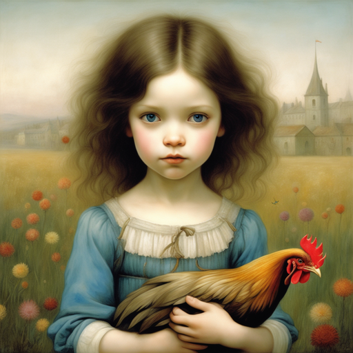 Никто и не приметил, как из длинноногого белого цыпленка вдруг получился такой замечательный петух. Первой его открыла пятилетний Маринка. У нее шелковистые русые волосы, а глаза, словно два голубых цветка, забрались вверх и притаились под ясным лбом. Петух за этот год стал взрослым, обзавелся большой семьей черных, рыжих и белых кур. Ночью и по утрам он пробивал кирпичную стену избы звонким голосищем и хлопаньем крыльев. Днем петуха Маринка кормила хлебом, зернами ржи, пшеницы и особенно желанными для обоих - семечками подсолнуха. Петух все время вертелся около Маринки. Соседка, как-то увидев птицу на коленях у Маринки, безбоязненно выклевывавшую крошки из кармана платья, всплеснула руками и воскликнула: «Гляко, вот, терка-то, так и трется около девчонки... чудная птица». Ей согласно и охотно поддакивала Мария Трофимовна - Маринкина бабушка. В деревне ее обычно называли Трофимовной. Прозвище Терка незаметно превратилось в «Ерку», да так и пошло: Ерка да Ерка. По утрам Ер