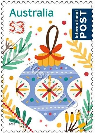 На декабрьских марках 2023 года изображены иллюстрации: празднично накрытый стол с волшебными сценами в дымящемся рождественском напитке, люди и животные вместе наблюдают за падающими звездами, дом под северным сиянием со следами на снегу, кошка и собака с письмом за окном, ветка дерева с совой и птицами с подарками, кролик с конвертом с волшебным содержимым, люди и животные вместе украшают елку, ёжик в метели с высокой кучей подарков, медведь в окружении Рождественские елки с птицами в качестве рождественских украшений и парад животных с огнями.