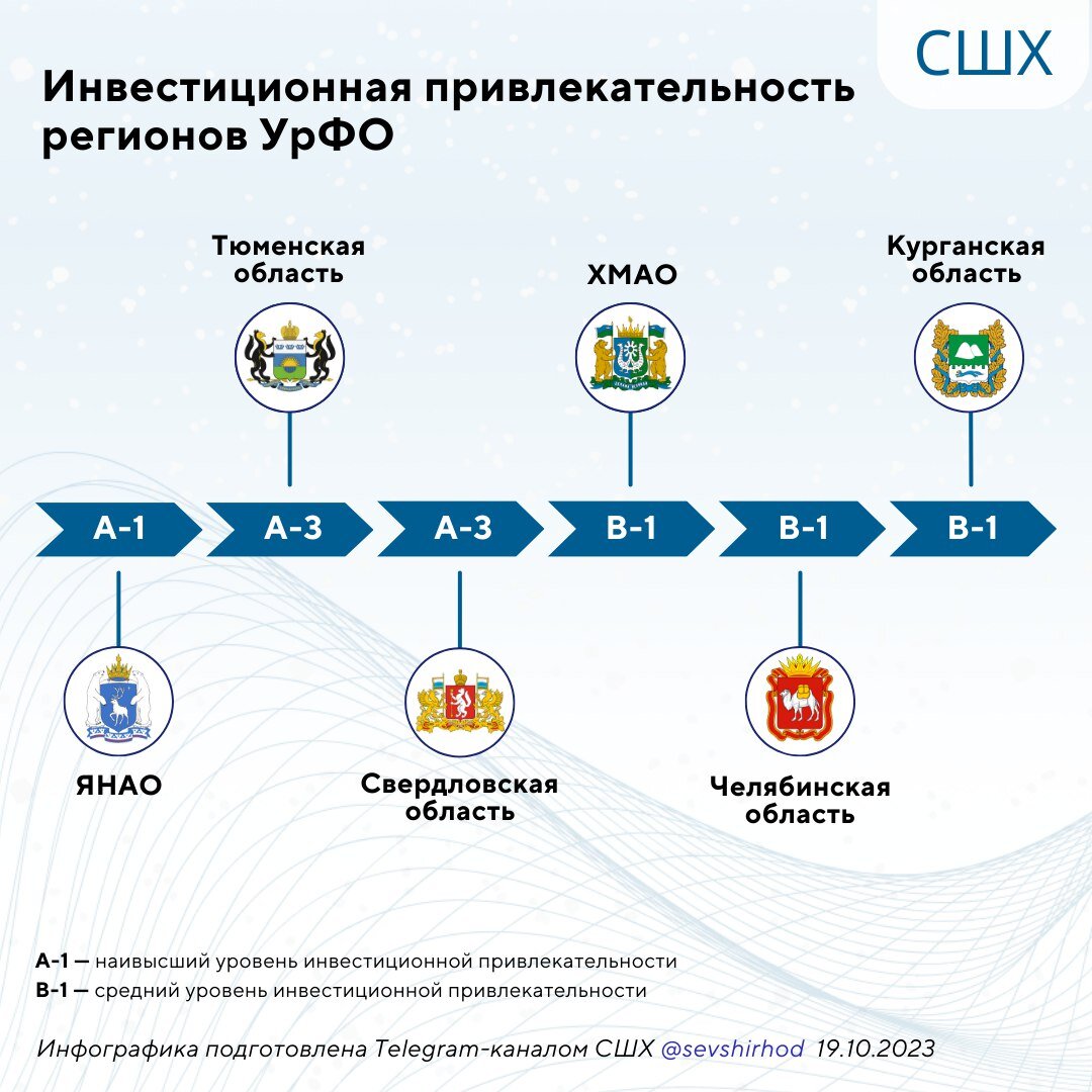 Лучшим среди уральских регионов стал ЯНАО (губернатор Дмитрий Артюхов) — оценка А-1, сохранившаяся с 2022 года. Ямал вошел в топ-5 самых привлекательных для инвесторов субъектов в стране. К одной из самых сильных сторон ЯНАО можно отнести высокую бюджетную обеспеченность, это гарантирует активное участие региона в инвестиционных процессах. По интегральной оценке финансовых ресурсов Ямал занял третье место в общенациональном