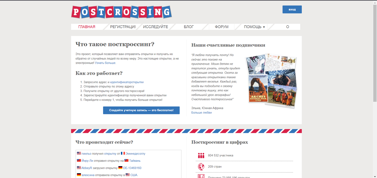 Всем привет! История создания Postcrossing началась в 2005 году. Идея сайта возникла у португальского программиста Пауло Магалханеша, который в своей жизни много путешествовал и обменивался открытками с друзьями из разных стран. Однако он задумался о том, как было бы интересно получать открытки не только от знакомых, но и от случайных людей из других уголков мира. Так появилась идея создания онлайн-сервиса, где каждый пользователь может отправлять и получать открытки от любого человека на планете. В 2005 году Пауло запустил первую версию сайта Postcrossing. Система работала просто: каждый участник регистрировался на сайте, указывая свой адрес для получения открыток. Затем система случайным образом выбирала адрес получателя, которому нужно было отправить открытку. За время существования Postcrossing стал очень популярным, привлекая людей со всего мира. Сейчас сайт поддерживает более 800 000 пользователей из более чем 200 стран. Каждый день тысячи открыток отправляются и доставляются в