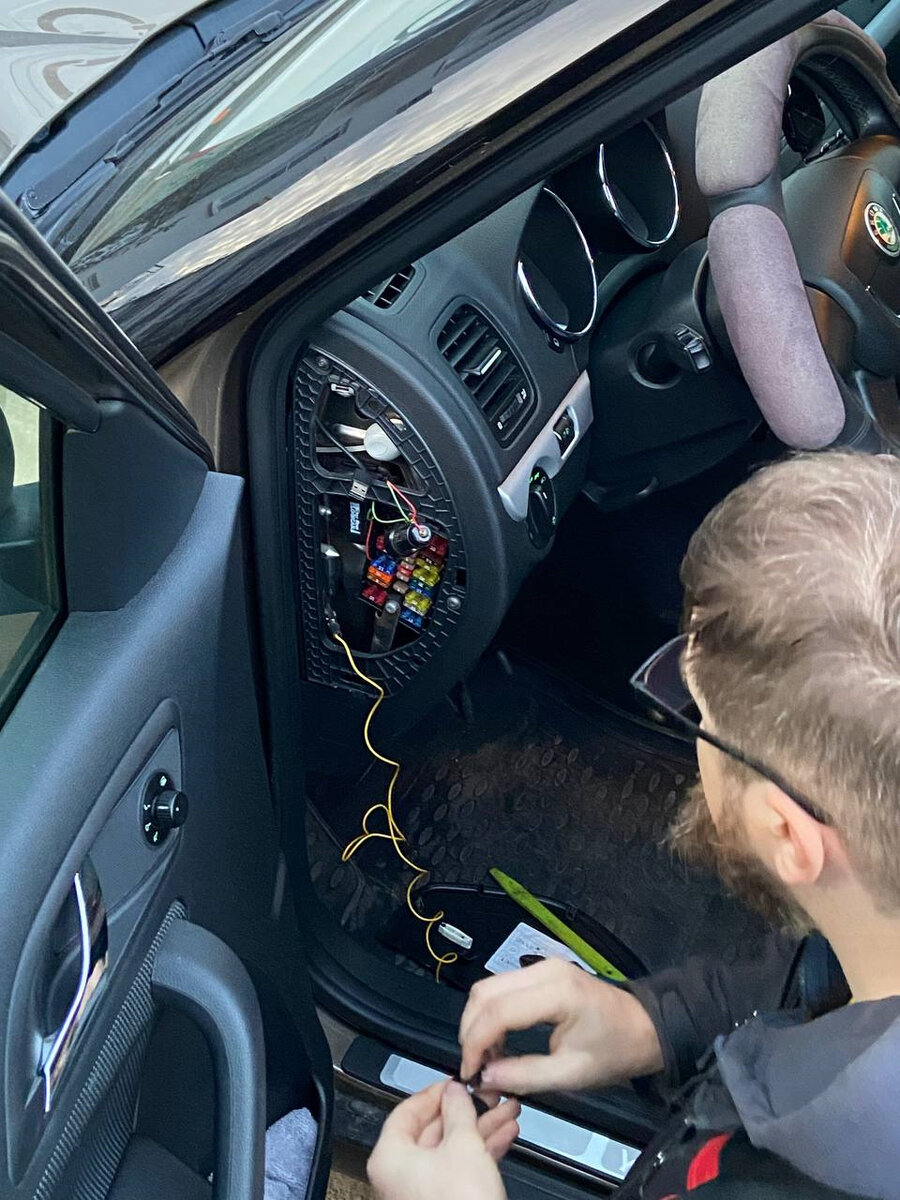 Ранее подключение было скрытым. Питающий провод провели под верхний плафон с выпуском на лобовое стекло, далее на левую стойку и вывели к блоку предохранителей на левой стороне панели приборов. Вскрыли крышку блока предохранителей, проверили питание. Выяснилось, что переходник (адаптер) в прикуриватель просто сгорел. Произвели замену переходник (адаптер). Работа видеорегистр