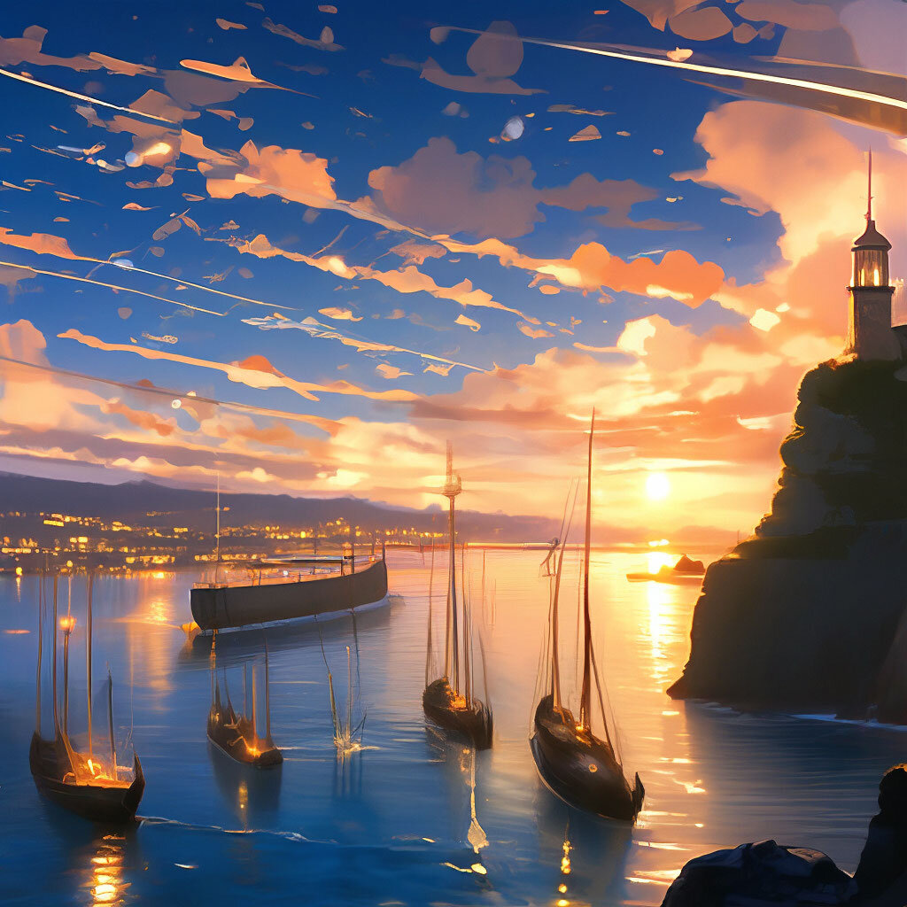 Золотистый свет вливается в распахнутое настежь окно, лаская край не до конца поднятого бумажного жалюзи. Вечер. Ты сидишь на подоконнике, свесив босые ноги в комнату, и закатные лучи, пробиваясь через слюдяно-прозрачные крылья, окутывают твой силуэт ореолом. Я не вижу твоего лица, но знаю, что ты улыбаешься. И улыбаюсь в ответ. Я знаю, что ты мне сейчас предложишь. И не ошибаюсь. – Полетели со мной, – протягиваешь мне руку, и я повожу плечами, чувствуя страшное желание наполнить ветром свои крылья. Просто зуд. И потому согласно киваю, ступая на подоконник. Далеко внизу – там, где круча обрывается в Гавань, становятся на причал корабли. Изящные легкокрылые конструкции с ажурно изогнутыми килями опускаются в медово-вязкую воду и сдувают летательные пузыри. Скоро ночь. – Полетели, – ветер высоты парусом вздувает твои чёрные волосы, а небесное золото бросает блики на дно зрачков. – Оставь открытым окно. * * * Ночные полёты похожи на сон. Наверное, это и есть сон. Мне иногда кажется, что у