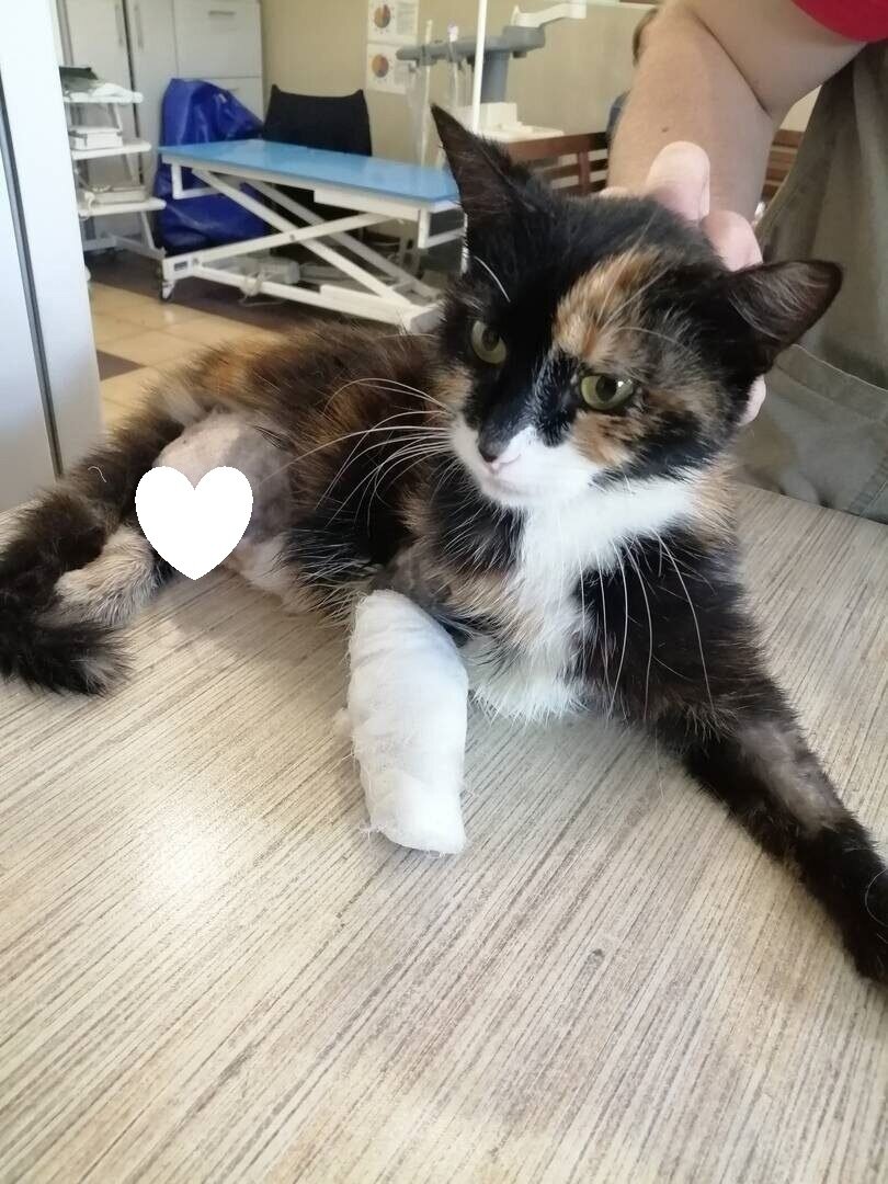 Итак, Тучка, так зовут кошечку, жила в автосервисе, который располагался неподалеку. И вот, в один из дней, кошка вернулась в ужacном состоянии. Задней лапки она лишилась полностью, а передняя была оголена (без подробностей). По этическим соображениям и правилам платформы я не размещаю фото кошки в первые часы. По словам директора автосервиса, девочка пострадала от поезда. Ясно, что жить в автосервисе и дальше она уже не сможет. Вопрос стоял о том, сможет ли она жить вообще, насколько серьезные повреждения. При поступлении в клинику, перед докторами стояла задача стабилизировать состояние питомицы и облегчить боль. Ей ставили капельницы, делали по несколько перевязок в день, кололи сильные обезболивающие. Кроме того, ей потребовалось переливание. Сама питомица, первые пару дней, не ела, ее кормили принуд
