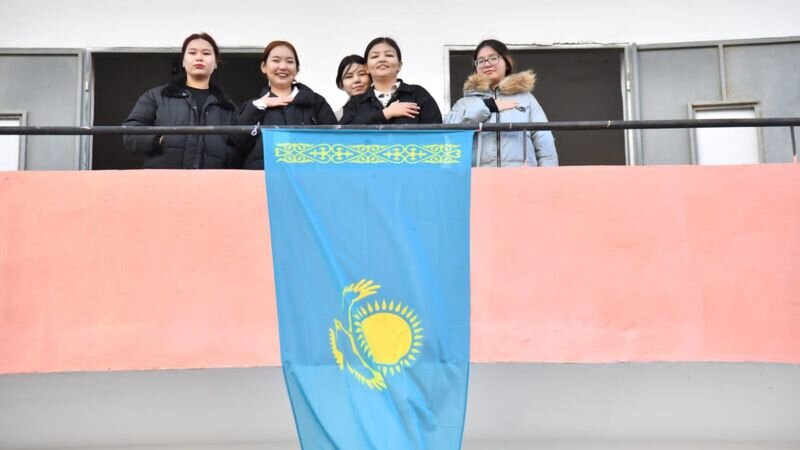 Акция, посвященная Дню Республики, началась 22 октября — одновременно в нескольких городах Казахстана на фасадах жилых домов вывесили Государственный флаг.