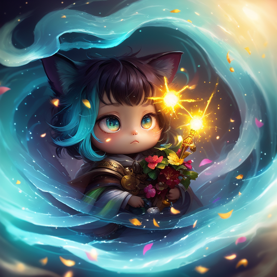Здесь я использовала немного иной запрос и поставила параметр "аниме". Сами видите, что получилось что-то странное в итоге 🙃 Но мне очень приглянулась шерсть-листики. Однако, как по мне, здесь котик более реалистичный, чем мультяшный, как я ожидала.