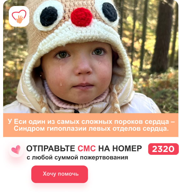 Помимо операций на открытом сердце малышке пришлось перенести сложную операцию на желудок. Девочка чудом осталась в живых. У Есеньки работает только половинка сердечка, поэтому весь организм находится под большим ударом. В России девочке остаётся ждать 18-летия и надеяться, что подходящее сердце найдётся. Но доживёт ли она? Сделайте пожертвование любым удобным для Вас способом, подарите Есении жизнь! ПОМОЧЬ ЕСЕНИИ СЕЙЧАС > Здравствуйте, дорогие читатели! Несмотря на смертельно опасную болезнь, множество операций и осложнений, малышка Есения выжила. У девочки один из самых сложных пороков сердца – Синдром гипоплазии левых отделов сердца, проще говоря у неё нет половины сердца. Чтобы спасти жизнь Есении, необходима радикальная коррекция порока сердца. Эту уникальную операцию готовы провести в детском госпитале Бостона. Цена спасения крошки огромна. Времени мало, поэтому мы просим Вас объединиться во имя детской жизни. С самого рождения жизнь Есении висит на волоске. Помогите, проявите ми