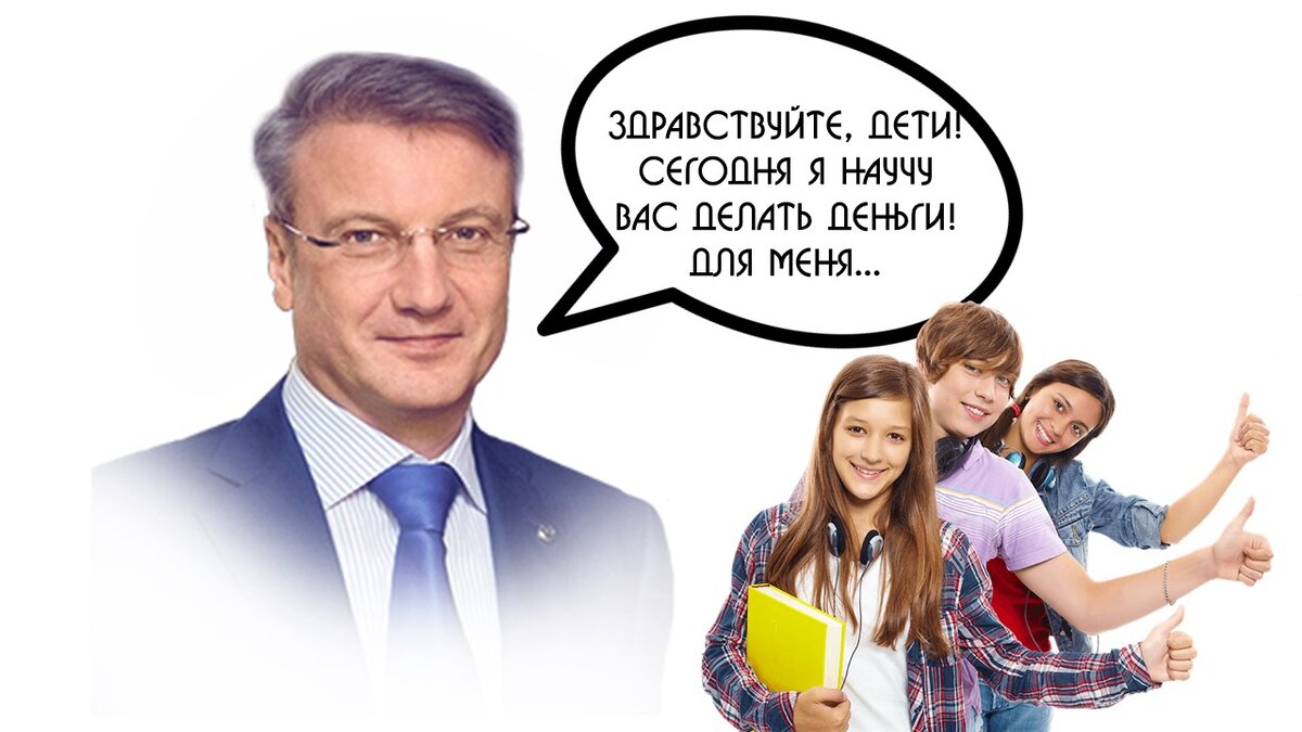 Сначала начнем учить, а потом и сами школы сделаем бизнесом. Но разве не этого и добивается глава "Сбера"? Фактически сейчас Герман Греф активно продвигает образовательную систему, которая будет готовить не просто идеального потребителя (а учителя давно бьют тревогу, что воспитываем мы именно потребителей), а идеального банковского клиента.