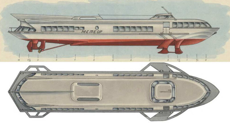 «Метеоры» — легенда советского речного пассажирского транспорта. Это массовая серия скоростных теплоходов на подводных крыльях, разработанных конструктором Ростиславом Алексеевым. Ходили эти суда и по Волге, и по Неве, и по сибирским рекам.