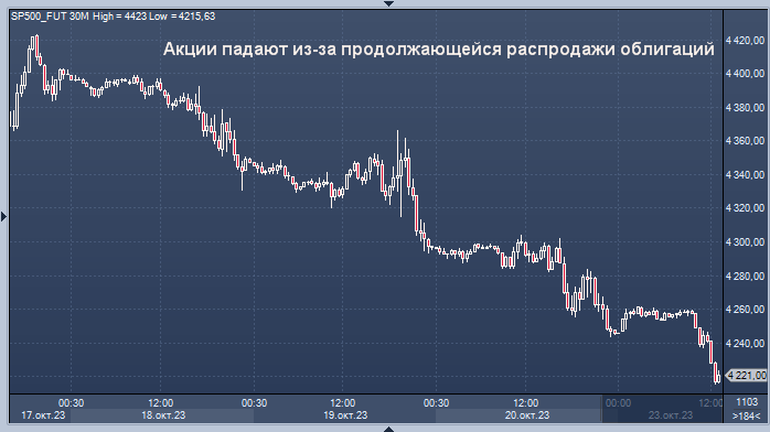 В Европе индекс STOXX 600 теряет 0,5%, также достигнув семимесячных минимумов, а чувствительные к процентным ставкам акции сектора недвижимости упали до самого низкого уровня с 2012 года.