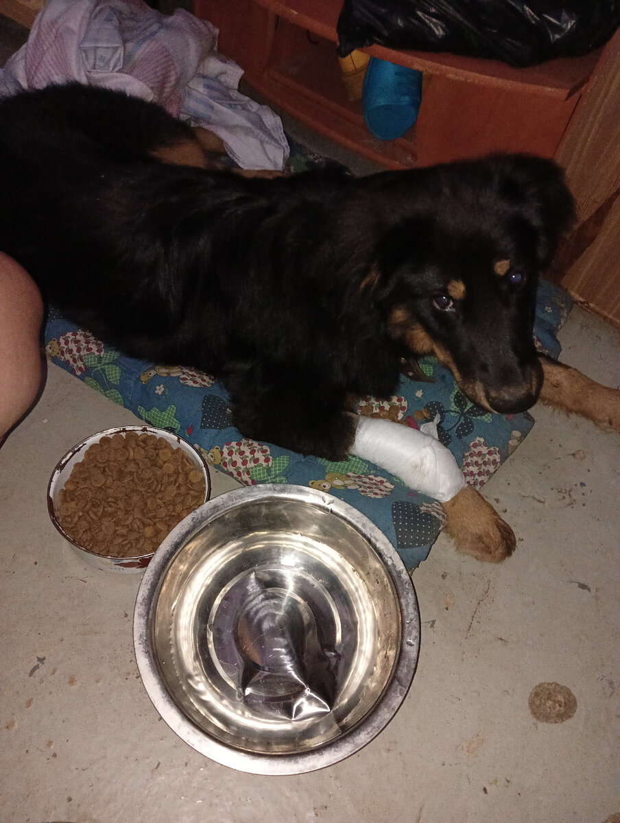 Сегодня расскажем немного о собаке, которую подобрали сбитой на дороге 17.10.2023. У пса был перелом лучевой и бедренной кости. Пока мы несколько дней ждали приёма травматолога, нашлись его хозяева. Оказалось что это Бай, ему нет и года и он сбежал от доверенного лица своих хозяев, которые уезжали на лечение зрения в другой город(они инвалиды по зрению, муж и жена). Сегодня мы попали на приём к травматологу, план операции на сломанную бедренную кость таков: реззекция шейки бедра. Бедренная кость трётся об осколок шейки бедра из-за чего у собаки возникает боль. Поэтому необходимо спилить шейку бедра, вместо неё должен образоваться ложный сустав, который позволит в дальнейшем нормально передвигаться. Лучевую кость собирать тоже нужно, там обширный перелом. На всё лечение нам сказали готовить до 30 тысяч рублей, пёс крупный, лапы 2, сложная операция... К сожалению, помочь его хозяева нам не смогут, это не посильные для их семьи деньги. Помимо всех проблем с костями, у него е
