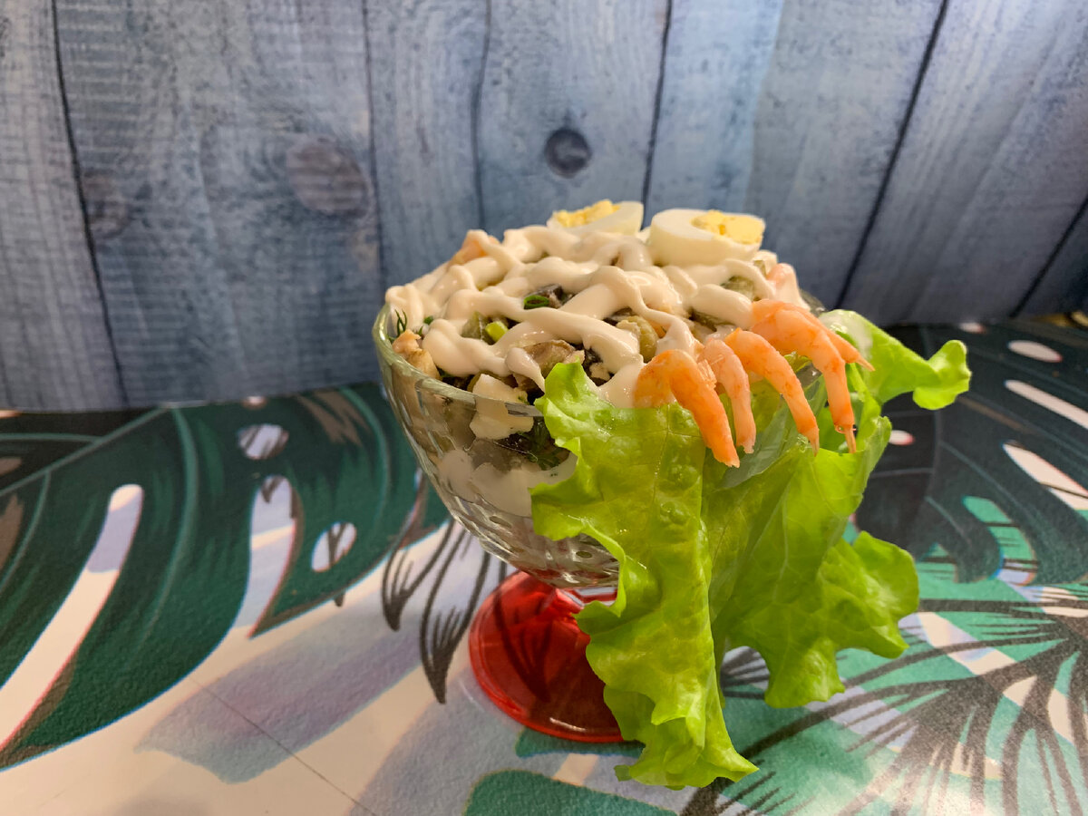 Всем привет. Сегодня я не буду давать рецепт, вы можете готовить его как любите или как хотите, а покажу два варианта подачи салата оливье, который стал легендой в нашей стране Первый вариант ресторанный, но из прошлого. В престижных ресторанах СССР, оливье подавали в стеклянных креманках. В качестве украшения могли использовать салатные листья и креветки, раковые шейки — так делали повара из «Праги» в Москве. Майонез всегда делали «домашний», и выкладывали сеточкой, на каждый слой салата. Если вы положите на верх, разрезанные перепелиные яйца, то салат, будет очень эффектно смотреться Данный вариант подходит на ужин для двоих. Второй вариант, более современный. Можно взять любую тарелку и положить салатный лист. Также , как и в предыдущем варианте, сеточкой слой за слоем, выложить майонез. Украсить продуктами из салата А именно огурцом и морковью. Для этого нам понадобится овощечистка. Данный вариант также подходит, как ужин для двоих. И не большой