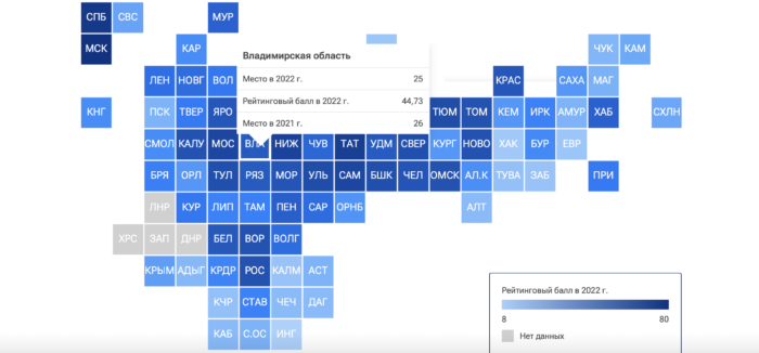 Возглавили рейтинг Москва, Санкт-Петербург и Татарстан. В тройке регионов с худшими показателями оказались Хакасия, ненецкий автономный округ и Ингушетия.