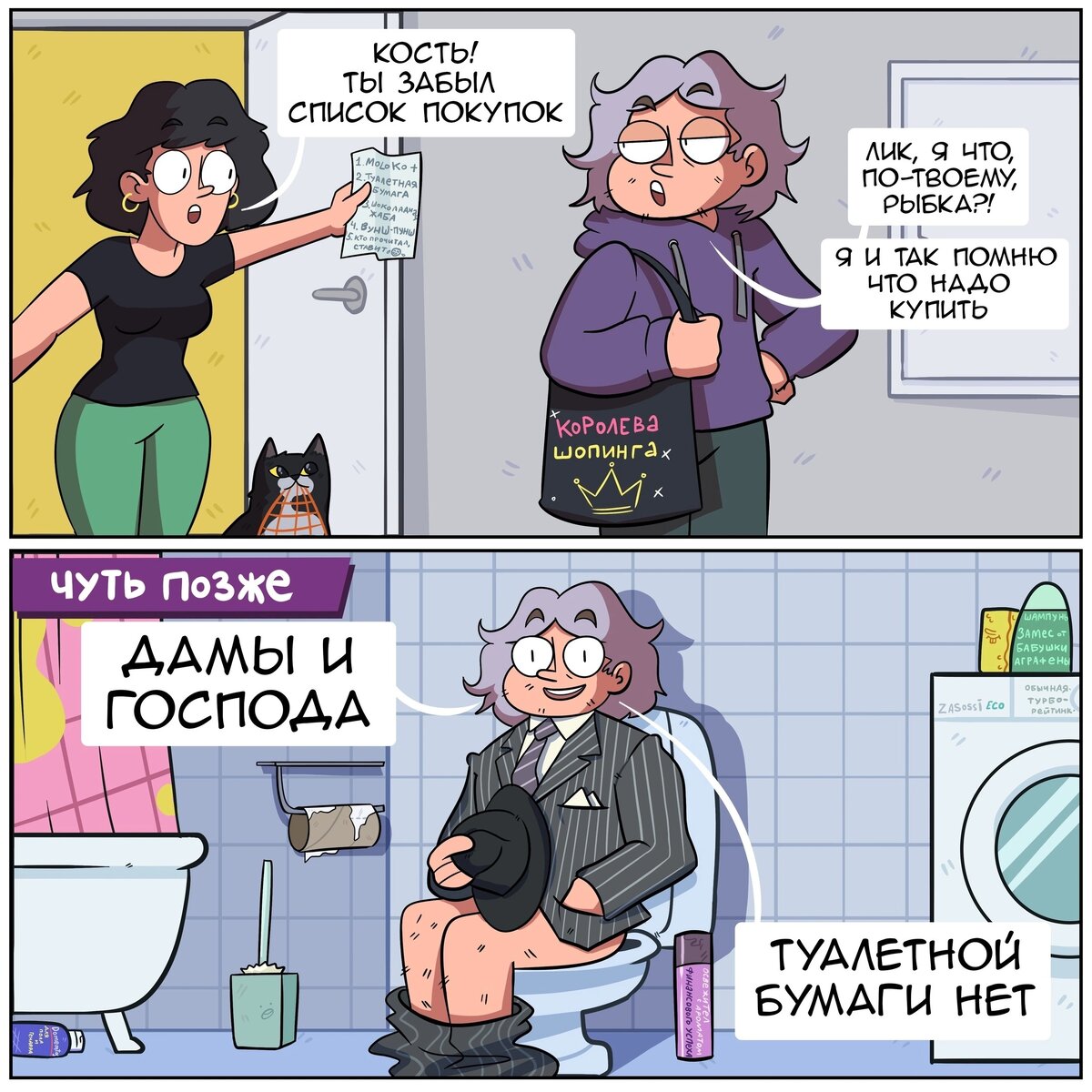 Туалетный юмор - 7 смешных комиксов о ситуациях, когда неожиданно закончилась туалетная бумага