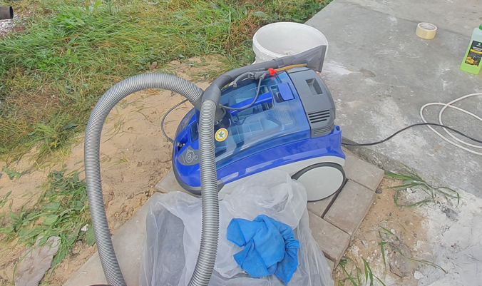 2. Обычный пылесос. Зачем два? Ну потому что мне хочется уменьшить количество итераций моющим пылесосом. По этой причине я взял строительный пылесос от Karcher – он у меня трудится на стройке и был под рукой. Не было бы его – взял бы обычный бытовой. Суть его просто «прибраться» перед влажной уборкой. Думаю, пылесос обычный есть у всех.