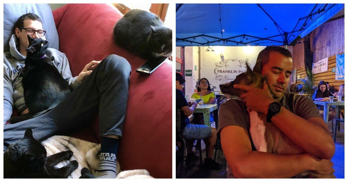 Когда дело доходит до того, чтобы в семье появился питомец, почти всегда есть кто-то, кто выступает против. И чаще всего это представители сильной половины человечества. Но факты упрямая вещь, и по дальнейшем событиям видно, что никто не балует четырёхлапого члена семьи так, как это делают брутальные и суровые мужчины. Полюбуйтесь на эту идиллию! 1. Папа: "Нам не нужен еще один кот в доме!" Он через два месяца после того, как у нас появился Филя: 2. Мой папа и кошка, которую он "не хотел’” 3. "Просто для ясности, это ВАШИ кошки, я не хочу иметь с ними ничего общего" 4. Никаких собак и кошек! Только через мой труп! 5. Теперь лучшие друзья 6. Несколько месяцев не соглашался на просьбы жены завести собаку, а потом влюбился с первого взгляда 7. Наверняка ещё и костюмчик ей лично выбирал 8. Буквально вчера говорил, что собак терпеть не может 9. Он перестал говорить "нет", но так и не сказал "да" 10. Он не хотел кота. А теперь готов часами лежать в такой позе, чтобы коту было удобно 11. О