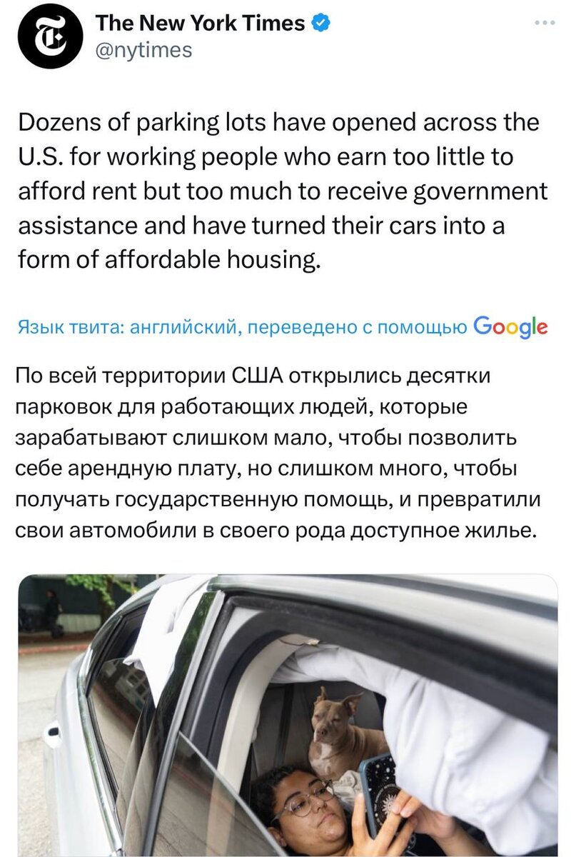 По всей стране открылись десятки парковок для работающих людей, которые могут позволить себе машину, но не могут арендовать жильё. Это, действительно, проблема.