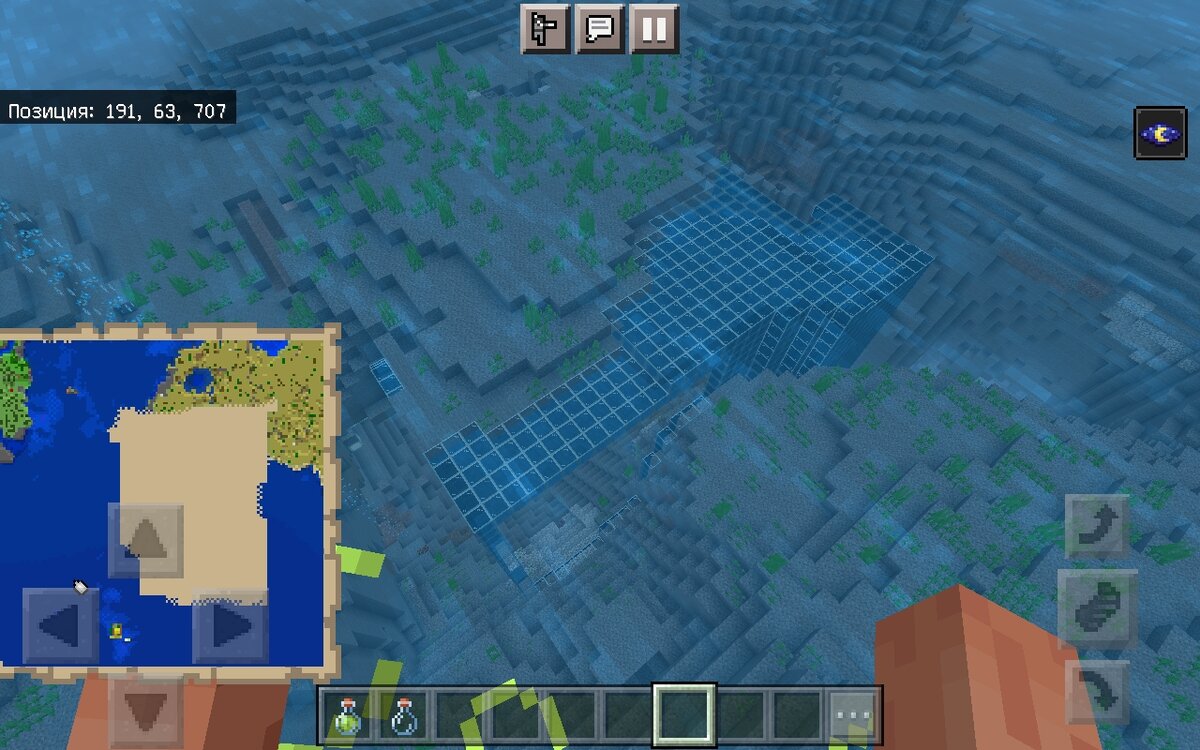 Здравствуйте, читатели. Как я и говорил в комментариях предыдущей статьи сегодня я выпускаю статью. Кстати, эта статья 40-вая на моём канале. Не так уж и много, но и не мало. На 50 публикацию сделаю что-нибудь очень крутое. P. S. Ссылка на предыдущую статью с такой тематикой: Без лишних предисловий начну. Героем сегодняшней статьи является подводное убежище. Вообще, идея так себе. Но если хорошенько поработать на практике, то получится шедевр. Вот такой вид имеет "постройка" снаружи, над водой. Когда я только собирался делать это убежище, то оно должно было стать небольшим подводным городком. Но с моими практическими способностями идея осталась где-то в глухом лесу. Вот так выглядит выход из убежища, если конечно можно так назвать. Проплыв под водой, можно выплыть наружу. Не самый лучший способ передвижения, но от большинства мобов может защитить. Внутри я всё обделал гранитом: и стены, и пол, и потолок. С этим были вызваны небольшие трудности, когда вода начинала литься с потолк
