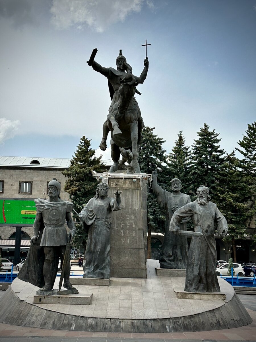 Первое, что встречает туристов в Гюмри - площадь Вардананц (бывшая площадь Свободы). В центре площади находится статуя Вардана Мамиконяна, легендарного полководца и защитника христианской веры, а с двух сторон её украшают церкви Аствацацин (с северной) и Аменапркич (с южной).