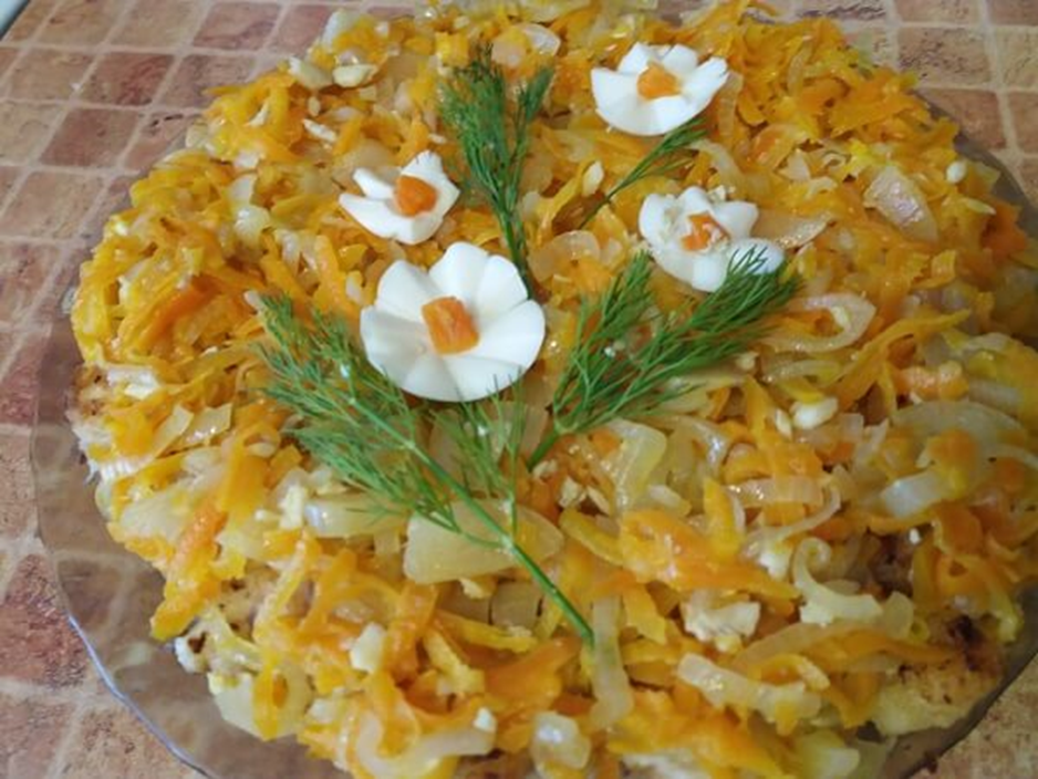 Такую закуску вполне можно приготовить и на обычный обед или ужин. Тем более оно малокалорийное, да и все ингредиенты для его приготовления полезные. Морская рыба – это прекрасный источник йода, фосфора, кальция, селена и т. д. Диетологи рекомендуют включать ее в свой рацион не менее 2-3 раз в неделю. А о пользе моркови и лука – самых востребованных овощей на нашем столе, говорить не приходится, поскольку их присутствие в нашем меню мы видим ежедневно.