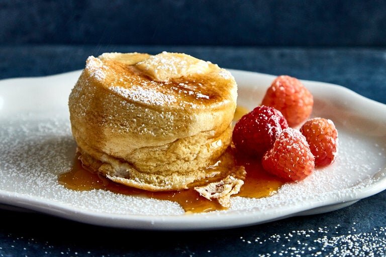 Японские суфле-панкейки готовятся из тех же ингредиентов, что и американские, а именно из яиц, муки и молока, но они намного выше традиционных панкейков благодаря добавлению дополнительных яичных белков. Белковую смесь взбивают до образования жестких пиков, затем аккуратно вводят в тесто, которое готовится непосредственно в металлических кольцах для выпечки, чтобы помочь панкейкам достичь своей характерной высоты. Самое главное - готовить тесто на очень медленном огне. Если на вашей плите есть маленькая конфорка или особенно низкий уровень нагрева, используйте его здесь, чтобы приготовить эти нежные панкейки, которые подойдут для завтрака, полдника или даже десерта. ИНГРЕДИЕНТЫ: ПРИГОТОВЛЕНИЕ: Приятного аппетита!