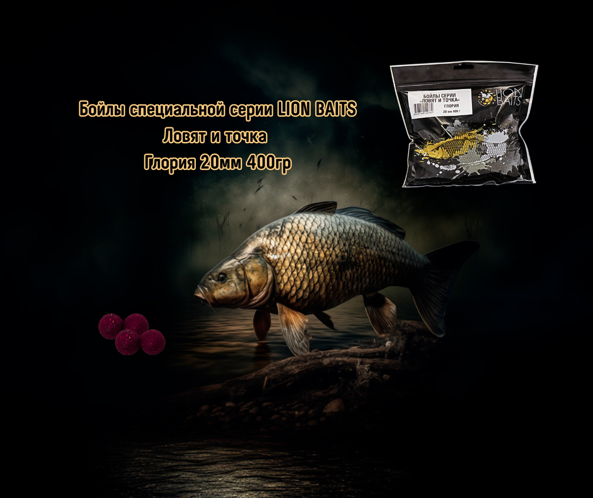Бойлы специальной серии «Ловят и точка» от LION BAITS «Глория» с ароматом клубники (купаж 2 видов), относятся к категории премиум сегмента, это первый вид бойлов в линейки нашего производства, которые мы позиционируем как бойлы высшего уровня сложности по количеству включенных компонентов. Бойлы данной серии, имеют повышенную питательную ценность, за счет содержания в составе увеличенных дозировок белковых ингредиентов.