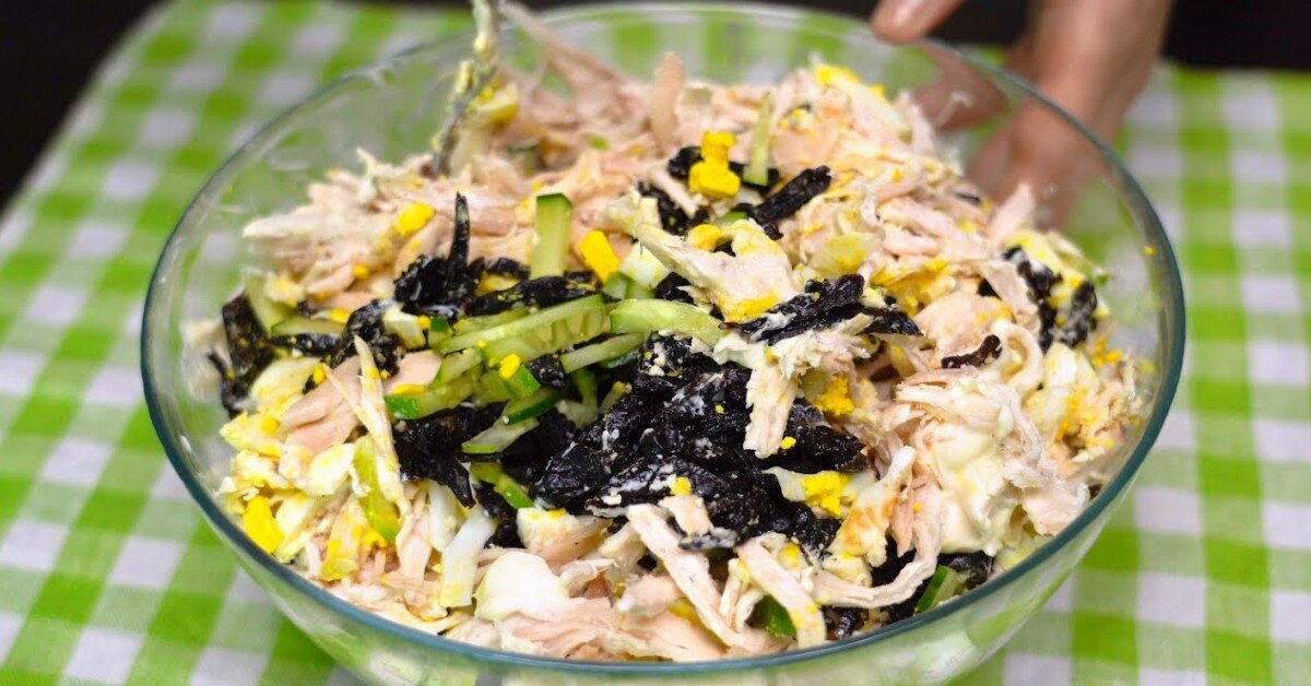 Сытный салат с отварной курицей и черносливом просто поражает своим удачнейшим сочетанием вкусов. Если вы не знаете, что же подать на закусочный стол, это блюдо сможет вас выручить. К тому же приготовить его — плевое дело. Заранее вам необходимо будет лишь отварить яйца и мясо. Для приготовления такого салата вы можете брать любую часть курицы. Это может быть как грудинка, так и филе бедра. Последний вариант — самый идеальный выбор, ведь такое мясо максимально сочное. Как приготовить вкусный салат с отварной курицей и черносливом Мягкий и мясистый чернослив не нуждается в замачивании. Если же вам попался твердый сухофрукт, его стоит залить горячей водой и оставить на кухне на 20 минут. После этого чернослив станет намного мягче и вкуснее. Ингредиенты Приготовление ; ; ; ; ; ; Стоять в холодильнике этому салату не нужно. Закуска готова уже после соединения всех ингредиентов. Благодаря этому вам не придется ждать еще час, пока она пропитается в холодильнике. К слову, если вы хотите сдела