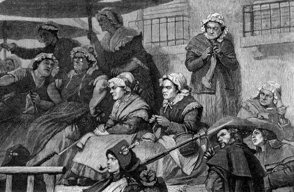 Les Tricoteuses — это вязальщицы времён Французской революции. Эти женщины были фуриями гильотины, они присутствовали на всех казнях, издеваясь над несчастными осужденными, продолжая свое вязание.