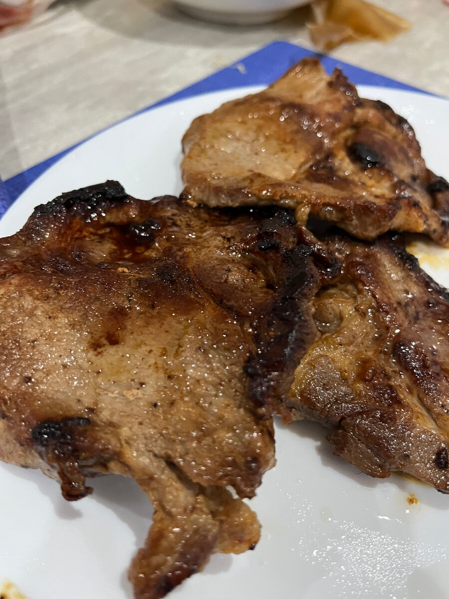 Сегодня мы с вами приготовим стейк. Рецепт достаточно домашний и легкий, получится у каждого. 🥩Ингредиенты🥩 Первым делом нарезаем свиную шею на стейки и складываем их в миску. Заливаем соевым соусом и оставляем их на 5 минут. На сковородку наливаем масло. Ждем пока она нагреется и можно выкладывать мясо. Обжариваем на сильном огне по 3 мин с каждой стороны, затем убавляем на средний и жарим еще примерно по 5 мин (ориентируемся по корочке). После жарки накрываем мясо фольгой и оставляем на 5 мин. «отдохнуть». Посолить мясо можно после того как снимете фольгу. Стейки готовы! Приятного аппетита! 😋🩷