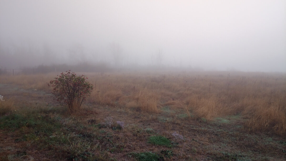 "... Над рекой поднялся туман, и грустная белая лошадь утонула в нём по грудь, и теперь казалось - большая белая утка плывет в тумане и, отфыркиваясь, опускает в него голову. Ёжик сидел на горке под сосной и смотрел на освещённую лунным светом долину, затопленную туманом. Красиво было так, что он время от времени вздрагивал: не снится ли ему все это? … "Расскажу - не поверят!" - подумал Ежик, и стал смотреть ещё внимательнее, чтобы запомнить до последней травинки всю красоту." (Сергей Козлов "Ёжик в тумане".) Я сейчас как ёжик в тумане: "Расскажу - не поверят!". Но у меня есть возможность запечатлеть это чудо в фотографиях. И я приглашаю вас на несколько минут в туман. Он в эти дни частенько зависает над морем, над степью, над нашим домом и садом. Это ещё одна примета крымской осени – густые продолжительные туманы. Ходишь по участку, словно в облаках. Почему «словно»? В облаках и ходишь. В тёплых, белых, тихих. Идёшь и не знаешь, сколько ещё тверди под ногами осталось. Может в