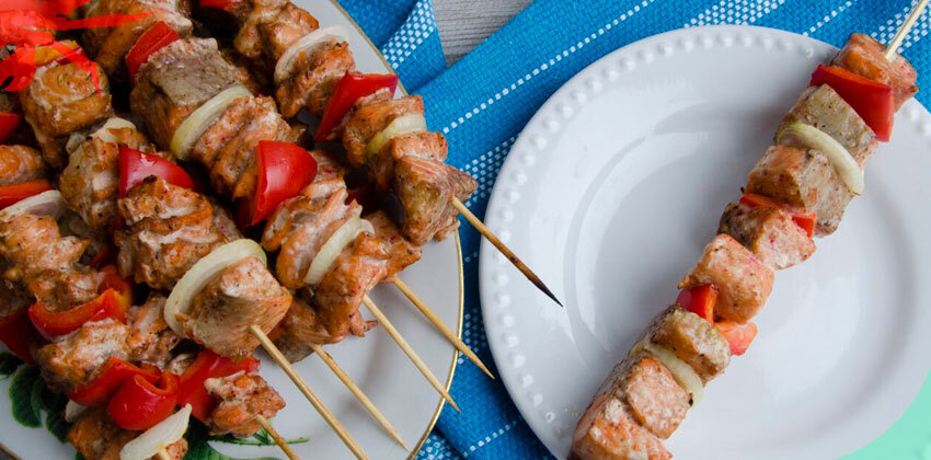 Ингредиенты: Для начала промываем рыбу под проточной водой и даем ей обсохнуть. Затем нарезаем порционными кусочками. Лук очищаем от шелухи и нарезаем кольцами. Перец очищаем от семян, нарезаем небольшими кусочками. Все подготовленные ингредиенты перемешиваем в отдельной емкости. В отдельной миске соединяем соевый соус, масло и лимонный перец. Тщательно перемешиваем, после чего добавляем к рыбе с овощами и оставляем на 30 минут. Затем берем шпажки и насаживаем рыбу и овощи. Выкладываем в форму для запекания и отправляем в разогретую до 180 градусов духовку на 20 минут. Блюдо готово. Приятного аппетита! Источник: https://wildcrab.ru/news?id=2211