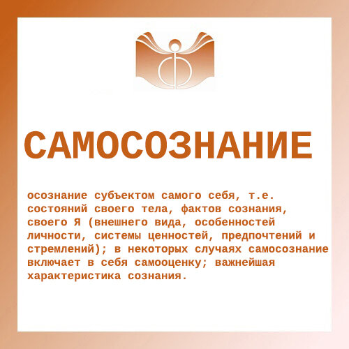 осознание субъектом самого себя, т.е. состояний своего тела, фактов сознания, своего Я (внешнего вида, особенностей личности, системы ценностей, предпочтений и стремлений); в некоторых случаях самосознание включает в себя самооценку; важнейшая характеристика сознания.