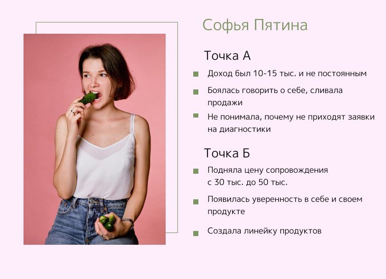 Появилась уверенность с своих силах, в своём продукте. Теперь понимаю, что мои услуги нужны людям, практически пропал синдром самозванца.