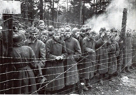 Лагерь тот в низине был, недалеко от поселка. По буграм столбы, между ними колючка, а по углам вышки с охранниками. И хлопцев там наших видимо-невидимо. Може тыща, а то и поболе. В драных гимнастерках сидят или валяются на земле. Строений никаких в лагере не было, так под открытым небом их и держали.