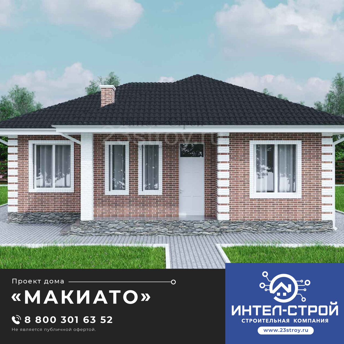 Внешняя отделка фасада выполнена с применением коричневого керамического кирпича и контрастных декоративных элементов. Цоколь дома облицован искусственным камнем.