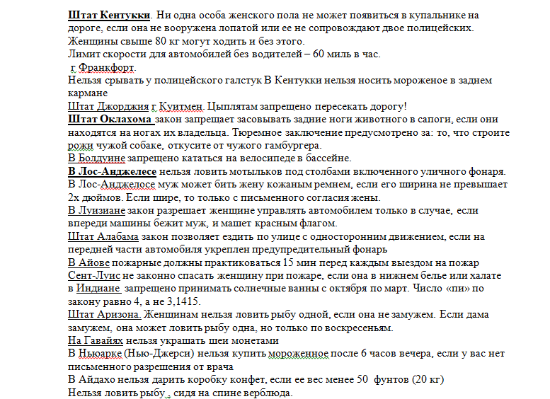 В первой части уже объясняла, что эту подборку сделала для себя в 90х годах. Статью распечатала и давала почитать студентам между переменкой в паре для отдыха. И объяснила почему могут быть столь странными законы Сейчас хочу пояснить некую странность текста. Статья была сделана в Виндовс, а это скриншоты с неё (чтобы не переписывать такой длинный текст). Скрины захватывают предыдущий текст, чтобы не потерять их последовательность. Поэтому не удивляйтесь, просто читайте дальше и наслаждайтесь! Поехали!