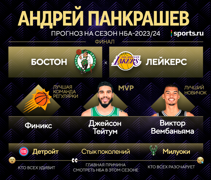 На мой взгляд, приход Вембы и, вероятно, последний (предпоследний) сезон Леброна, еще и в ранге самого старого игрока – это знаково.