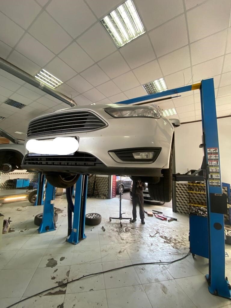 FORD FOCUS серебристый 2016г.в. 235000км Со слов клиента беспокоит скрип в задней подвеске при движении. В ходе осмотра выявлено разрушение всех сайлентблоков на задних рычагах и течь амортизаторов Произвели замену комплекта рычагов задней подвески в сборе и амортизаторов и регулировку сход развала Стоимость работ 31200 руб, запчасти клиента