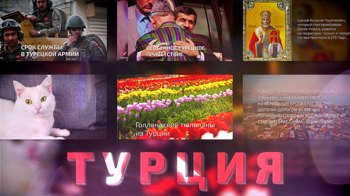На протяжении всей истории территория, на которой расположена Турция в наше время, принадлежала разным государствам - Персии, Риму, Византии, Армении. Государство Турция появилось только в 1923 году после развала Османской империи. Крупнейший город в Турции - Стамбул (он же назывался Константинополем). Он был основан в 667 году до нашей эры и являлся центром четырех империй - Римской, Латинской, Византийской и Османской. Фамилии в турецком государстве появились только в 1934 году, до этого у жителей была сложная система арабских имен. Голландские тюльпаны на самом деле были завезены в Европу из Турции в XVI веке. Турция омывается четырьмя морями - Эгейским, Средиземным, Мраморным и Черным. Именно поэтому пляжи Турции считаются одними из лучших в рейтинге европейских туристов. Гора Арарат, к которой в Ветхом Завете пристал Ноев Ковчег после Великого потопа, расположена в Турции. Кошка породы турецкая ангора сформировалась на территории Турции более 500 лет назад. Эта порода всег