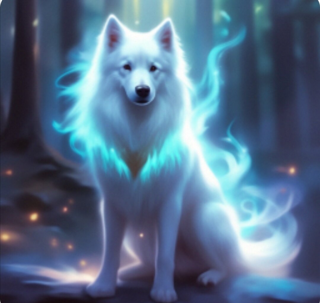 При последних словах девушкаи, животное, как будто поняв её слова, медленно вышло из летника, сделало несколько шагов навстречу, и село, помахивая роскошным хвостом. Голубое свечение, исходящее от собаки потянулось немного вверх и в сторону.