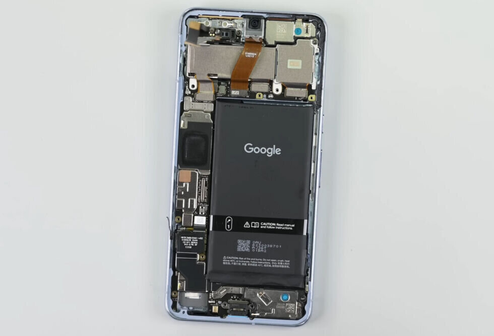 Недавно вышедший Pixel 8 Pro уже успел поразить пользователей и экспертов своими характеристиками и возможностями. Однако настоящий интерес вызвала разборка устройства, проведённая специалистами из iFixit, которая раскрыла несколько «внутренних секретов» смартфона. Процесс разборки Pixel 8 Pro не сильно отличается от предыдущей модели. Главной задачей является преодоление клея, который удерживает экран. После этого можно увидеть внутренности устройства, которые, к слову, выглядят практически так же, как и у Pixel 7 Pro: Однако Google решила пойти по стопам Apple и сделать внутренности своего смартфона более эстетичными. Теперь аккумулятор украшен логотипом компании, в то время как раньше он был покрыт лишь информацией от производителя и предупреждениями. Однако самым заметным изменением стало увеличение площади графитового теплового подложки, которая теперь покрывает около 60% аккумулятора. Это особенно важно, учитывая, что смартфон работает на SoC Tensor, разработанном совместно с Sam