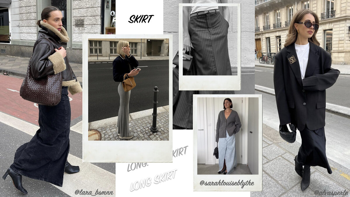 Мне очень нравятся уличные образы блогеров и стилистов с юбкой-макси. В моем видео на канале об осенних покупках вы могли заметить и на мне длинную юбку из костюмной ткани. Артикул на эту модель будет в конце статьи.
