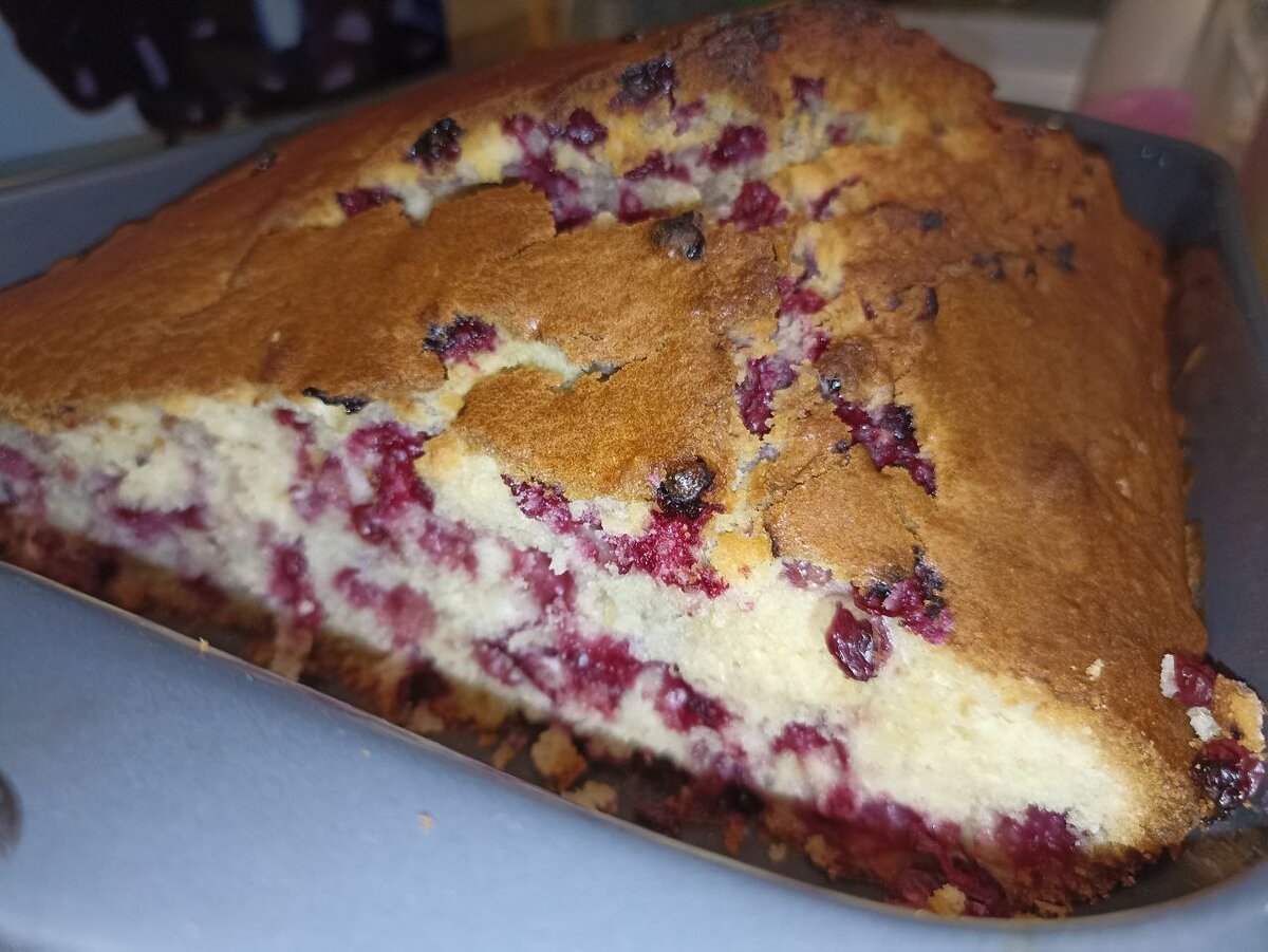Сегодня мы приготовим вкуснейший кекс с ягодами. Для этого нам понадобится: В отдельной чашке мы соединяем маргарин и сахар, взбиваем. Далее, мы добавляем яйца и молоко. Всё это вместе хорошенько взбиваем. В другой чашке мы соединяем хорошо просеянную муку, разрыхлитель и соль. Также, сюда мы добавляем секретный ингредиент-свою любовь и тогда ваши блюда будут самые вкусные. Затем, мы соединяем нашу сухую смесь и жидкую и хорошо перемешиваем. И добавляем ягоду. Я беру бруснику, ибо она кислая и получается очень вкусно. Вы можете добавить любую ягоду на ваш вкус. Когда мы добавили ягоду, мы аккуратно лопаткой перемешиваем и выкладываем в смазанную маслом, форму для выпекания. Когда выбираете форму для кекса, помните, что он еще и поднимется. Так что, выбирайте соответствующую форму для выпекания Выпекаем наш кекс в духовке при температуре 180 градусов около часа. Может быть и больше, и меньше. Тут все зависит от вашей духовки. Аккуратно следите и проверяйте зубочисткой. Когда вы проверя
