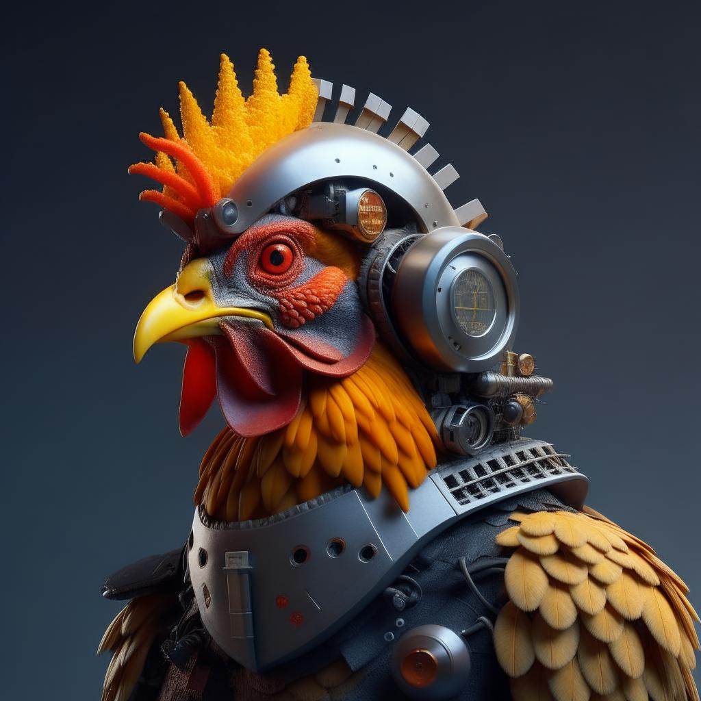 Когда-то в мрачном мегаполисе будущего, где тени механических гигантов скрывали небеса от солнечных лучей, жила маленькая кибер-курочка по имени Ряба. Её операционная система была обновлена только вчера, и она была настоящей цифровой дивой. Кибер-оптическое перо в её руке позволяло ей шифровать сообщения и исследовать виртуальные миры, а её перья блестели как пиксели в ночи. Однажды, когда мегаполис погрузился во мрак и холод стальных конструкций, Ряба решила отправиться в великое кибер-приключение. Её цель была проста - найти и разгадать секретные коды, спрятанные в самых опасных уголках мегаполиса. Ведь существовал один уникальный код, который мог включить все системы города и вернуть ему былую красоту и гармонию. Сначала она отправилась в глубины мрачных андеграундов, где свет лазеров заменял солнце, а кибер-крысы водились повсюду. Там она встретила Механо-лису, которая обещала помочь ей найти первую часть кода, но взамен требовала её кибер-перо. Ряба, зная важность своего пера, отк