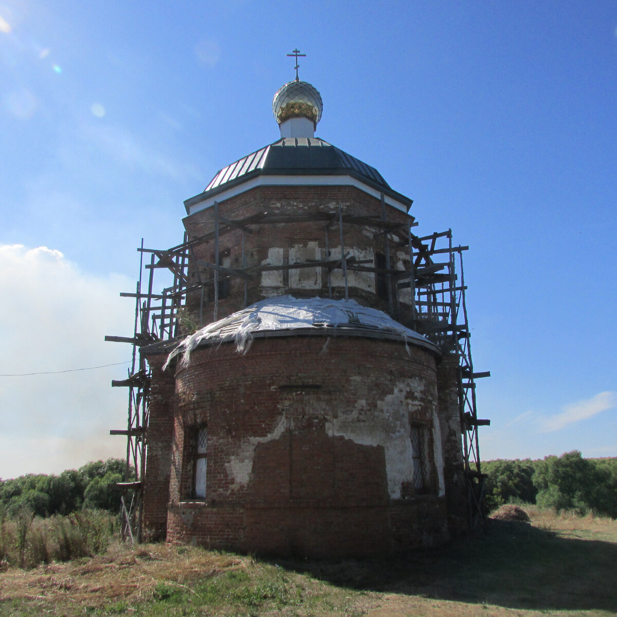Срезав угол, водитель выехал на пыльный проселок посреди разноцветных полей с ростками сельхозкультур, кратчайшим путем ведущий в Воронцовку. Я не увидел тех провалов на трассе, где, по словам Волкова, легковушка может уйти по самую крышу. Напоенный ароматом лугов, свежестью леса, ветерок, врываясь в открытые окна автомобиля, развеивает запах бензина в салоне, и проникаешься предчувствием почти что пушкинского Болдино. Воронцовка – старинное село. Его основатель в конце 17-го или в начале 18-го века - граф, представитель древнего рода, фаворит Петра Великого, - в дар от самодержца получил поистине райскую землю. Здесь дышит историей каждая пядь, сохранить это наследие – дело чести. На фоне живописных возвышенностей, что за пойменным лесом вдоль реки Еланки, в лучах солнца блестит позолотой купол церкви, возведенной в честь героев Отечественной войны 1812 года. Свято-Никольский храм в подмостках для проведения реставрационных работ, финансируемых за счет хозяйства Владимира Волкова. Это ли не добрый знак?